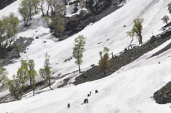 The Governor travelled by road particularly with a view to inspecting the status of the Pahalgam-Chandanwari Road. At Chandanwari, he discussed the arrangements being made for the Yatris with all the concerned officers who had assembled there. He was informed by Chief Engineer, PMGSY, that the Pahalgam-Chandanwari Road is being upgraded under PMGSY Scheme and a substantial portion of this stretch of road shall be improved well ahead of the commencement of the Yatra. The Governor emphasized the need for expediting the work to make the road suitable particularly for Shri Amarnathji Yatra 2011 related vehicular traffic.